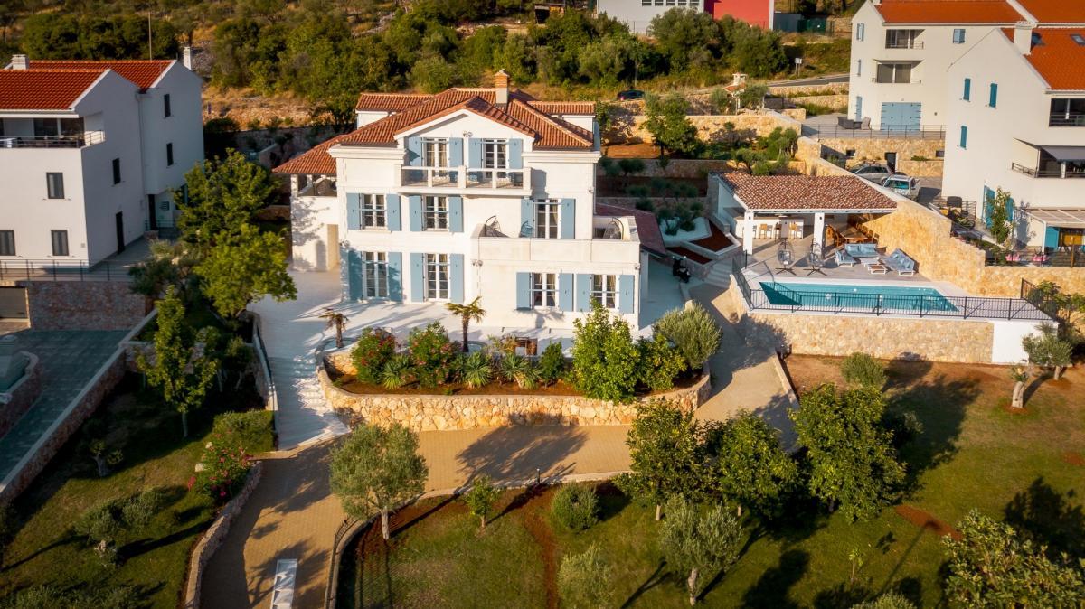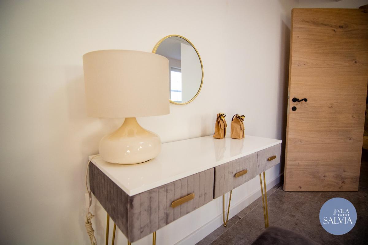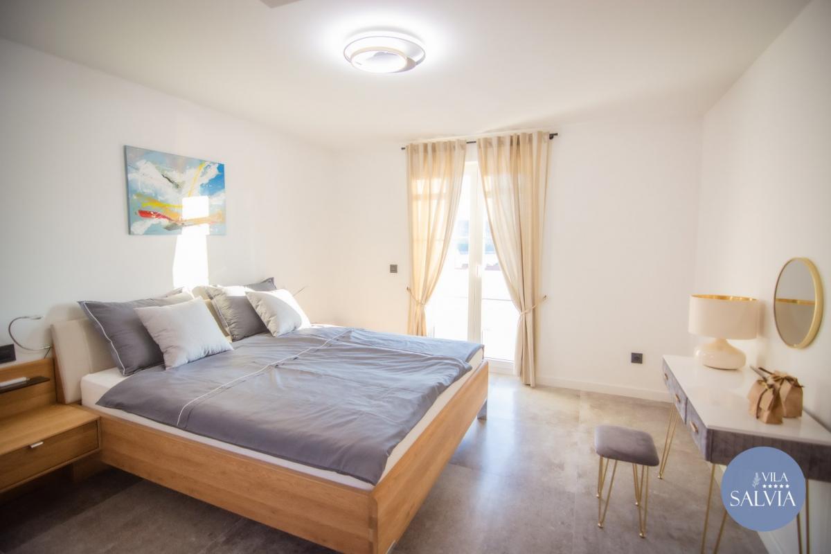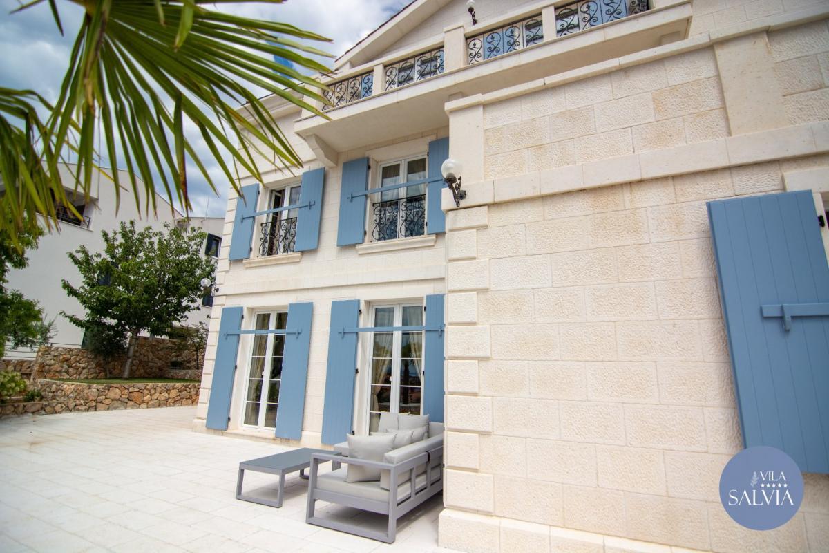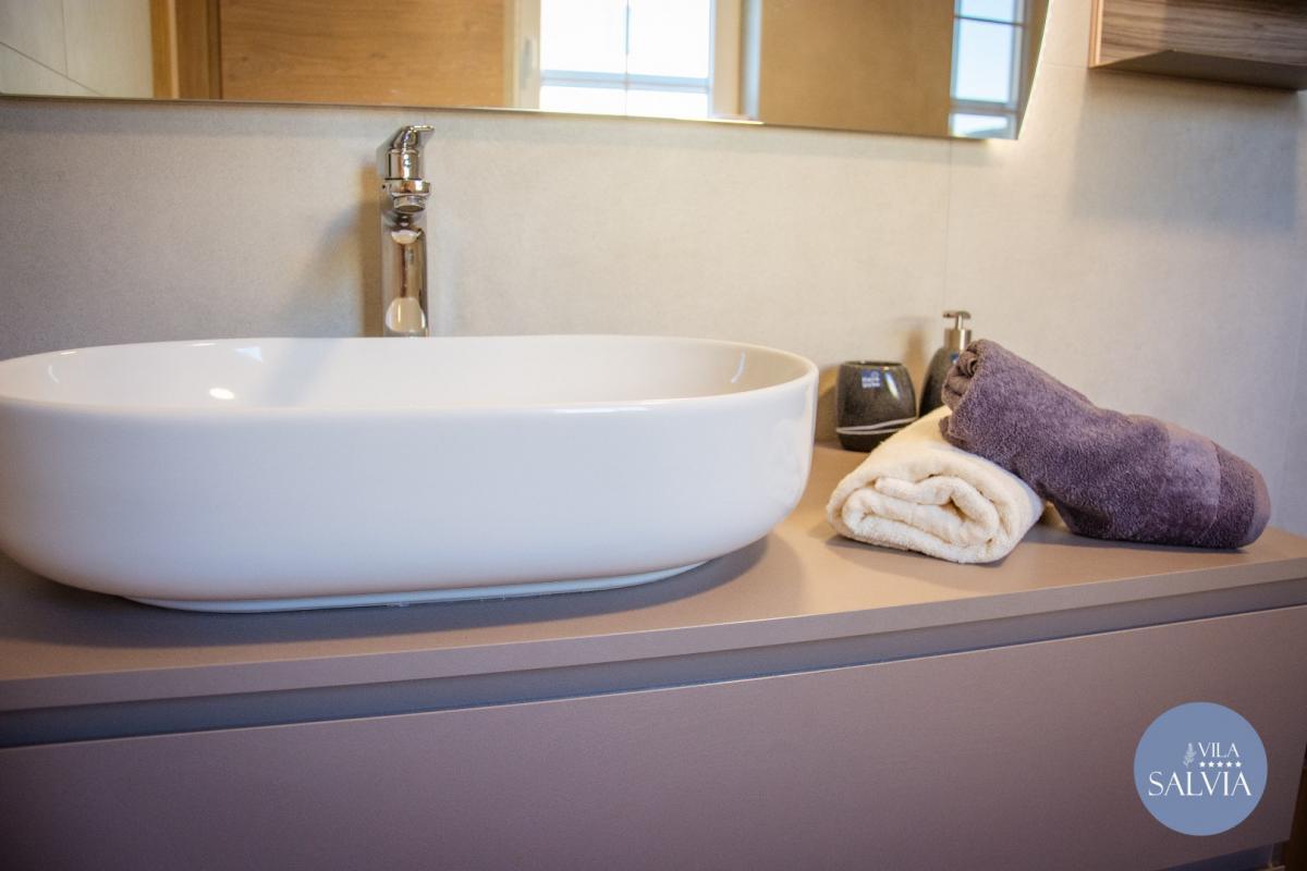 Villa Salvia je postavena z přírodních materiálů a vyzařuje eleganci a klid. Kombinace kamene a dřeva s pečlivě vybranými detaily a barvami vytváří pocit výjimečnosti a jedinečnosti.